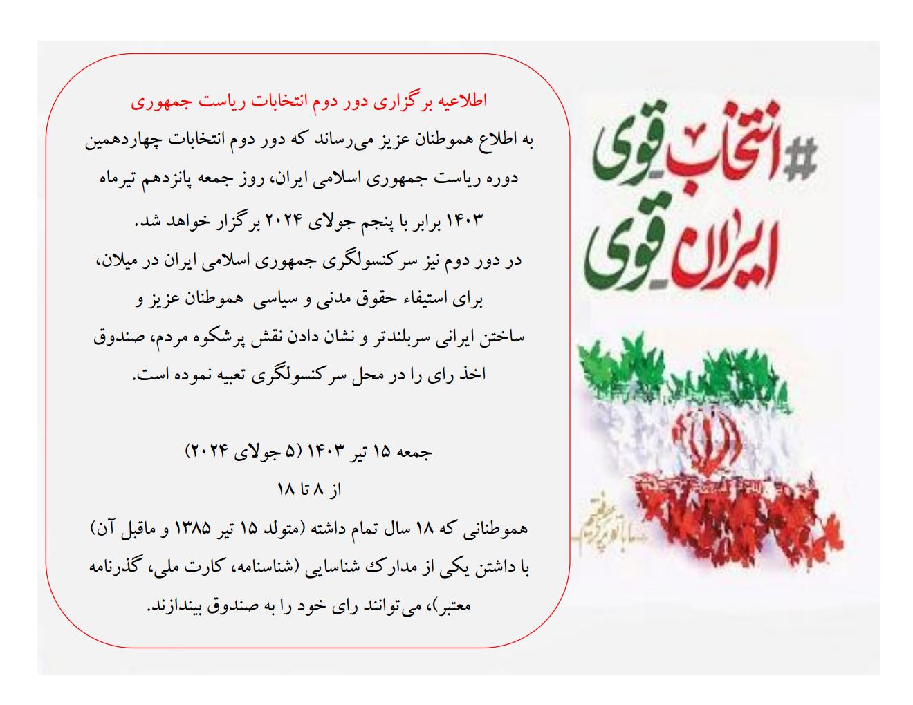 اطلاعیه برگزاری دور دوم انتخابات ریاست جمهوری